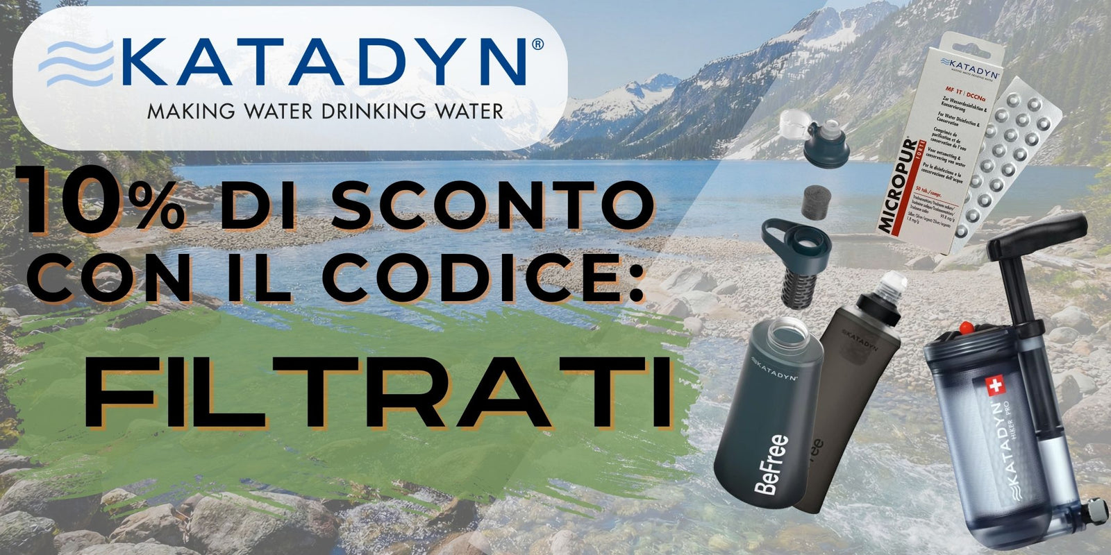 • KATADYN -10%: Usa il codice FILTRATI per il 10% di sconto su tutti i prodotti Katadyn (scade domenica a mezzanotte).
